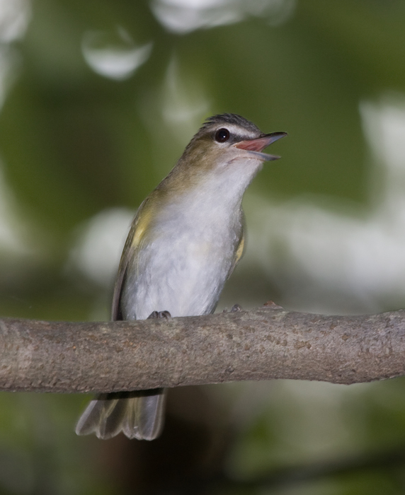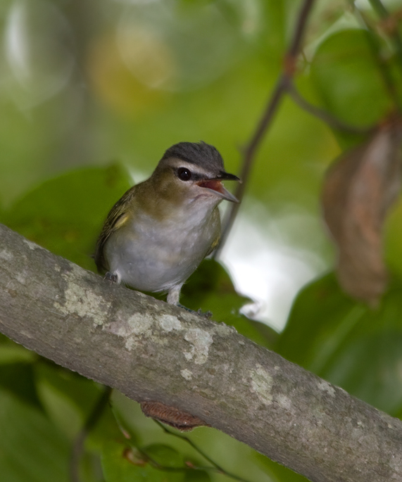 Below: A Red-eyed Vireo protests our presence in Martinak SP, Maryland (9/7/2009).