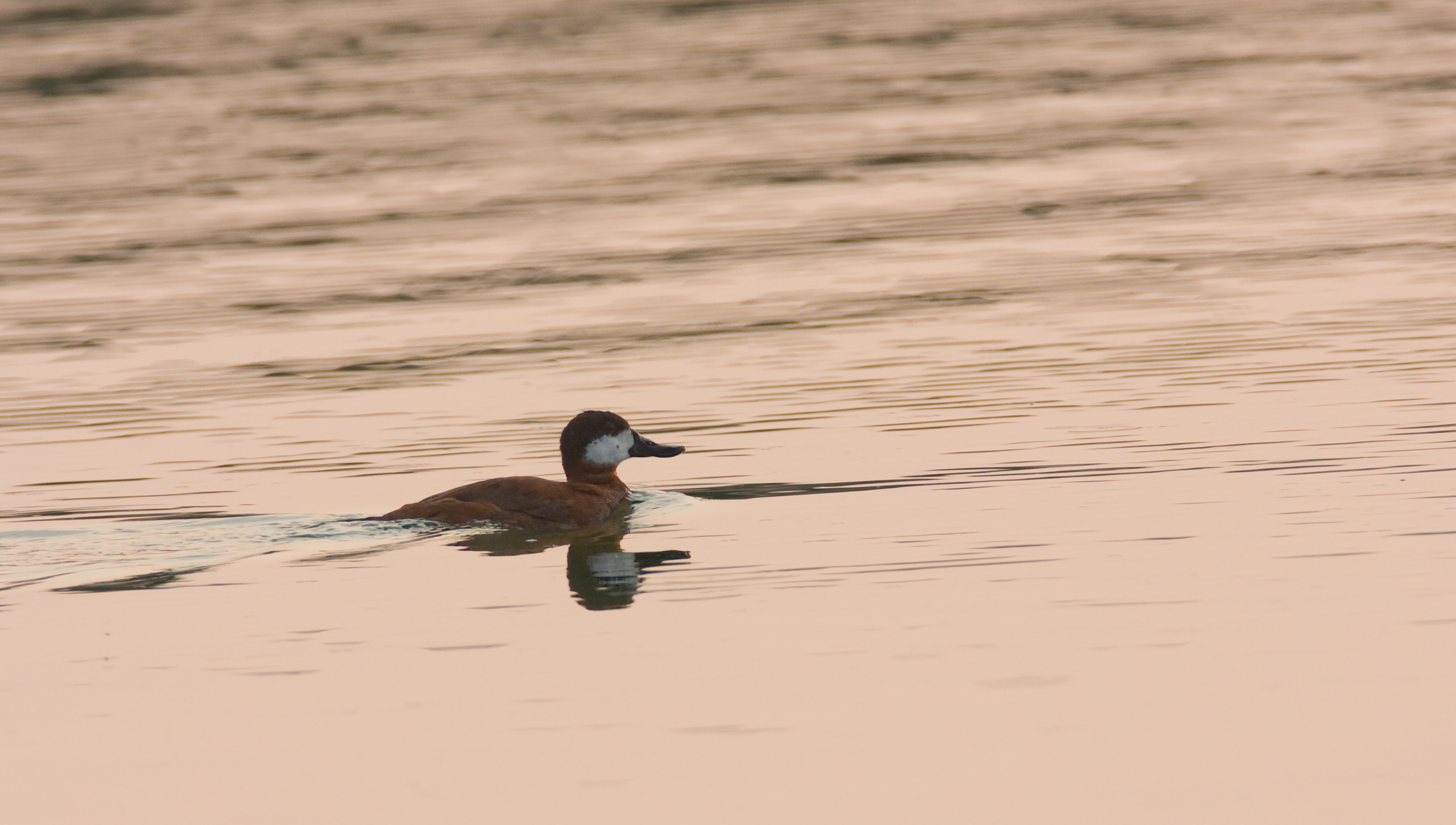 Below: A Ruddy Duck at sunset in Dorchester Co., Maryland (8/23/2009).