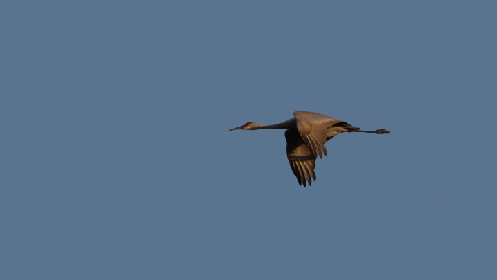 Below: One of several Sandhill Cranes that flew over, calling, at Volo Bog, Illinois (9/4/2009).