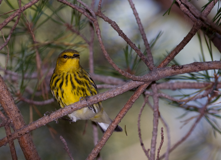 Above and below: Cape May Warblers in Prince George's Co., Maryland (9/19/2009). The male above is stunning, but these drab females might sneak around in the late fall Myrtle flocks on Assateague.