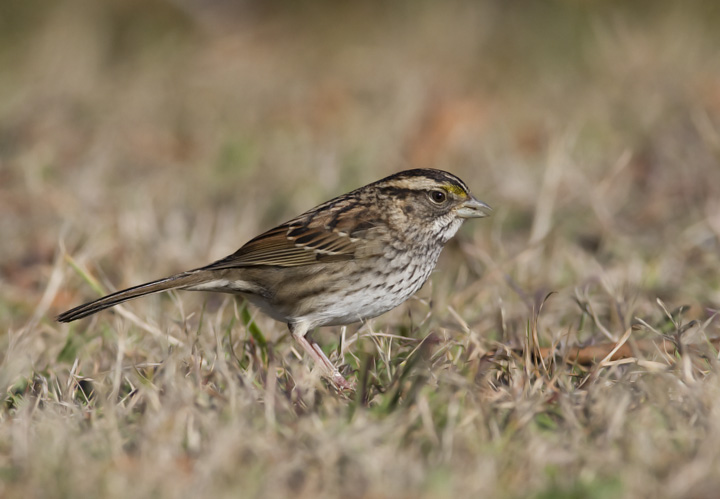 Below: A fairly drab tan-striped White-throated Sparrow for comparison (Assateague Island, 11/17/2008).