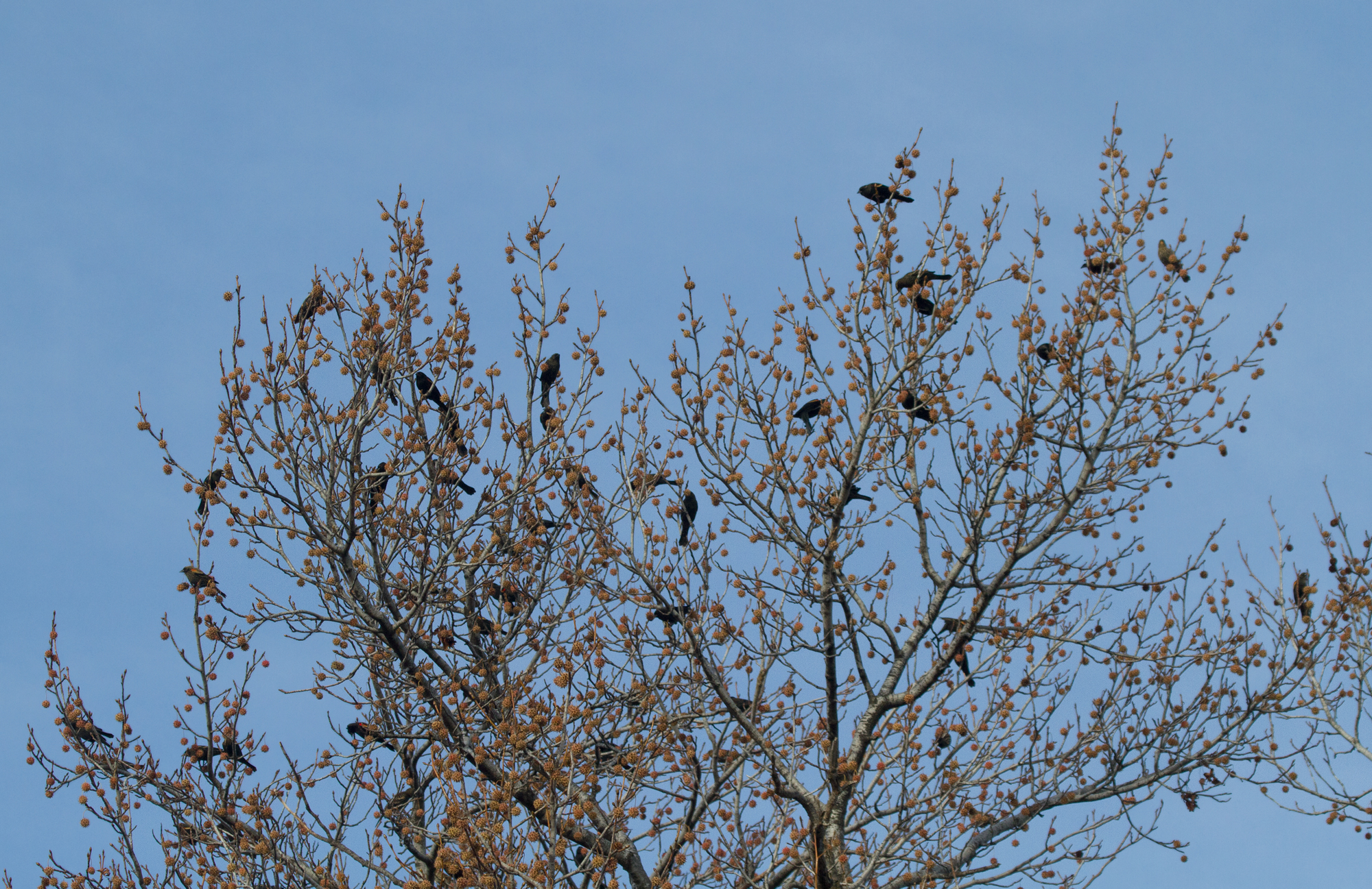 Below: Red-winged Blackbirds feeding in the Sweet Gums at Fort Smallwood, Maryland (11/24/2011).