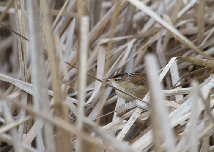 Below: A wintering Marsh Wren at Lilypons Water Gardens, Frederick Co., Maryland (1/2/2012). Uncommon.