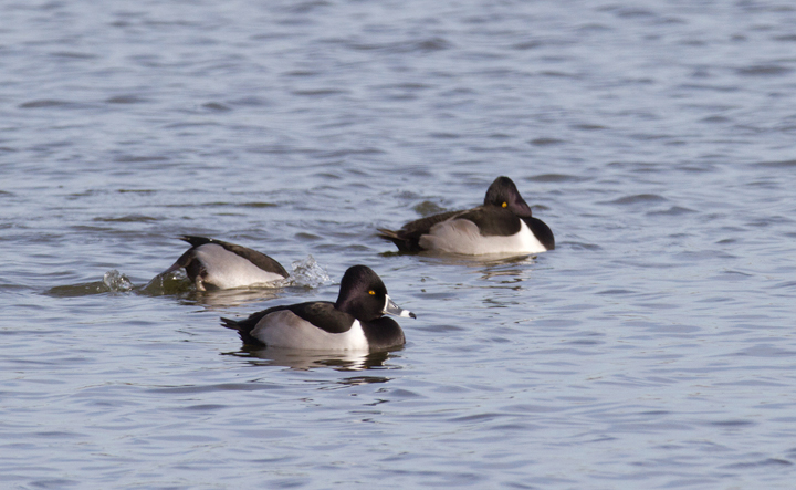 Below: Drake Ring-necked Ducks in a variety of classic poses - Worcester Co., Maryland (1/1/2012).