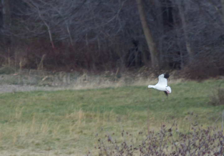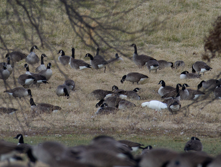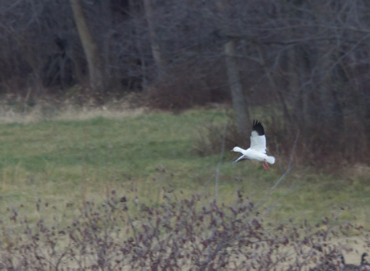 Below: A distant documentation photo of a Ross's Goose in Frederick Co., Maryland (1/2/2012). Rare on the western shore of Maryland, this individual was one of four birds documented here in the preceding days.