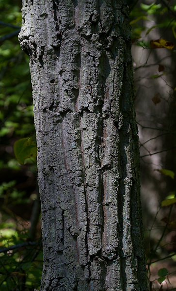 Below: The distinctive, deeply furrowed bark of the Chestnut Oak is a key field mark for distinguishing from Swamp Chestnut and Swamp White Oak. Photographed at Downs Park, Anne Arundel Co., Maryland (8/31/2012).