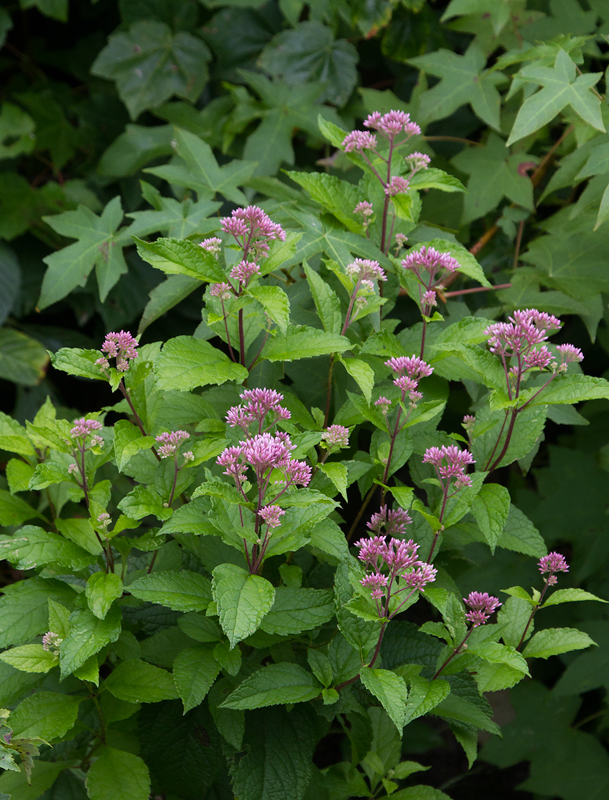 Below: Coastal Plain Joe Pye Weed in a creek drainage in northern Worcester Co., Maryland (8/19/2012). This species favors moist areas on the coastal plain. Note three nerves on leaves and pinched area on leaves near their bases.