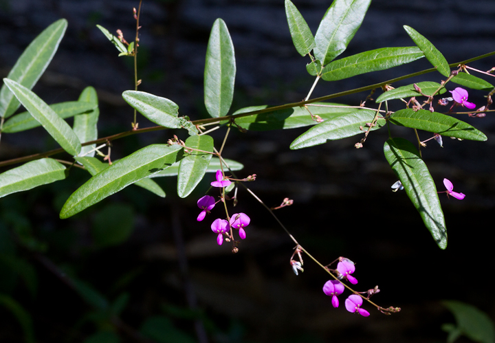 Below: Panicledleaf Ticktreefoil in woods along the Chesapeake Bay in Anne Arundel Co., Maryland (8/31/2012). This is a pretty complex genus. Identified by leaf shape, precise flower shape, smooth stem, and the length of the leaf stalk. Sessile-leafed seems most similar, but is ruled out by the length of the leaf stalk (greater than 1/2").