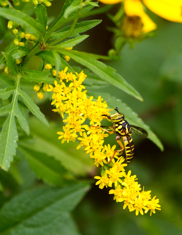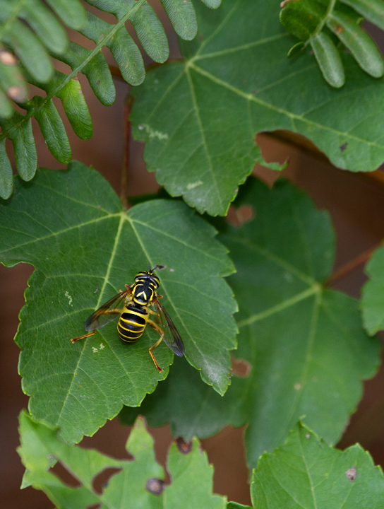 Below: Spilomyia longicornis, a yellowjacket mimic fly, in Worcester Co., Maryland (9/2/2012).
