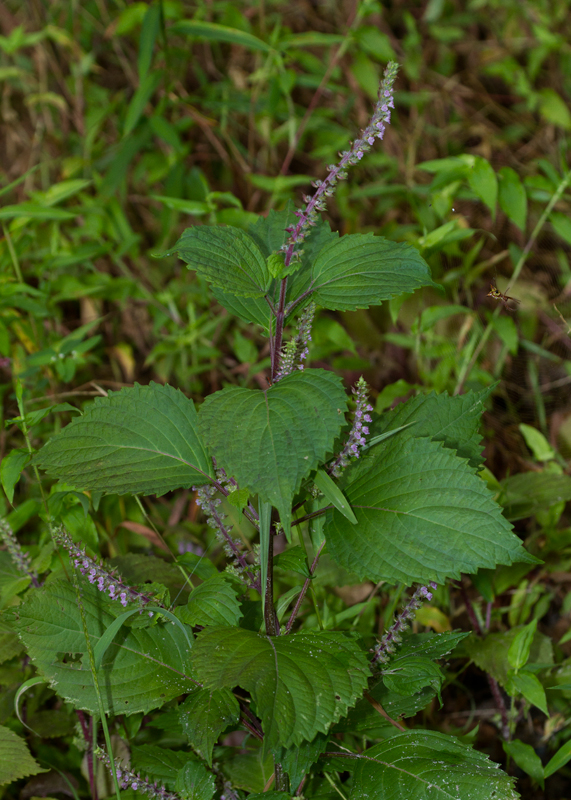 Below: A Beefsteak Plant blooming in Wicomico Co., Maryland (9/2/2012). Introduced from Asia, where it is a traditional crop, especially in Japan.