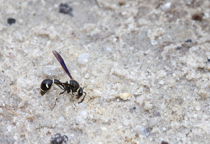 Below: Eumenes fraternus in Wicomico Co., Maryland (9/2/2012). There appear to be five species in the genus Eumenes in the Northeast. Here's an excellent key to those five species: Northeast Eumenes key.