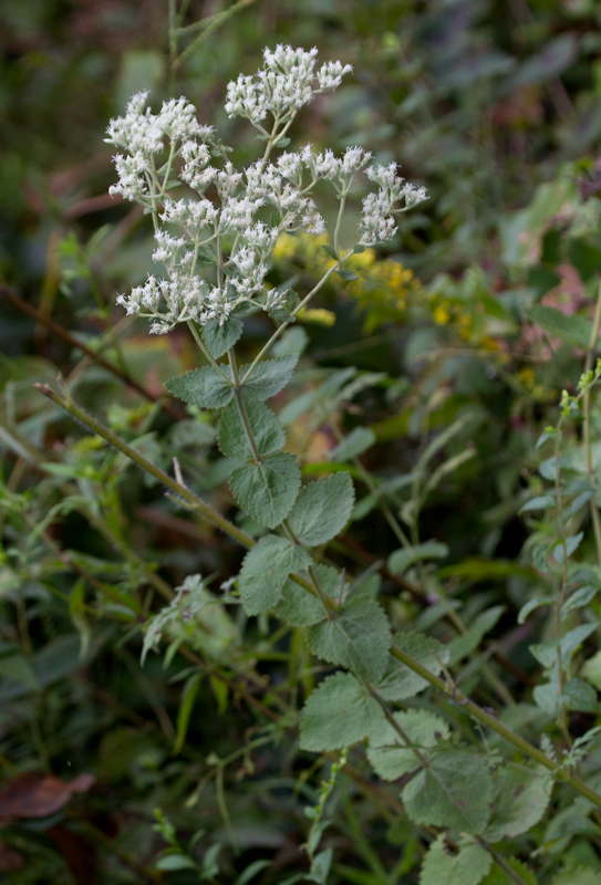 Below: Round-leaved Thoroughwort blooming in the Nassawango area of Wicomico Co., Maryland (9/2/2012). Note the very round leaf shape and extremely short leaf stalks.