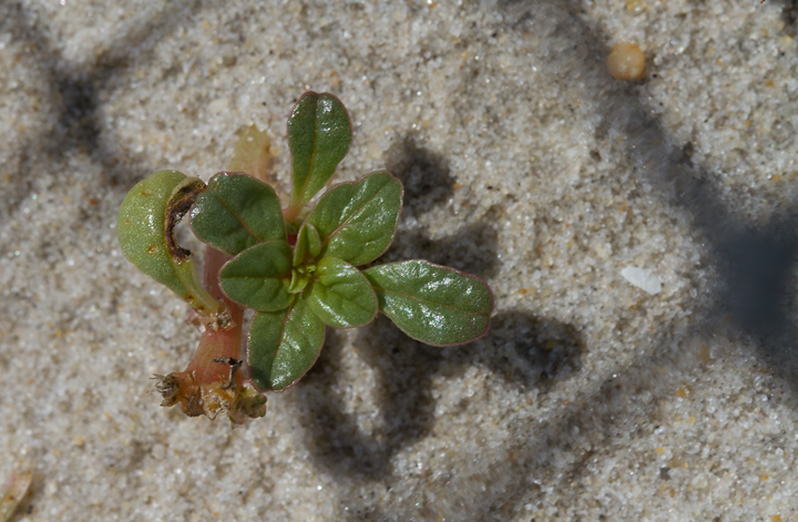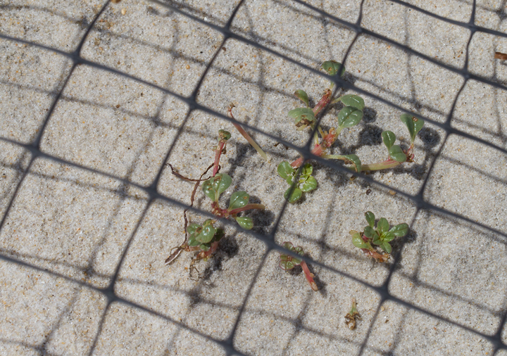 Below: Globally rare Seaside Amaranth in cages to protect it from Assateague's feral horses (9/9/2012).