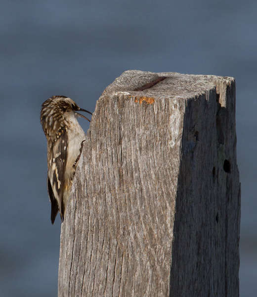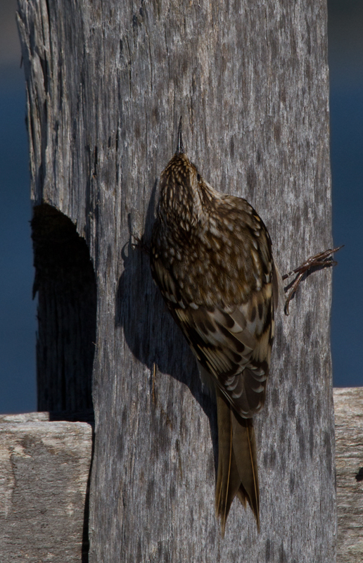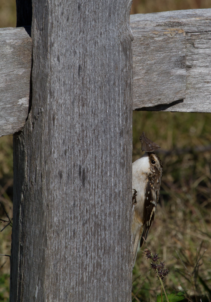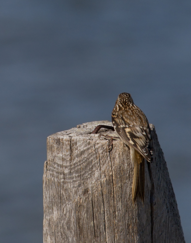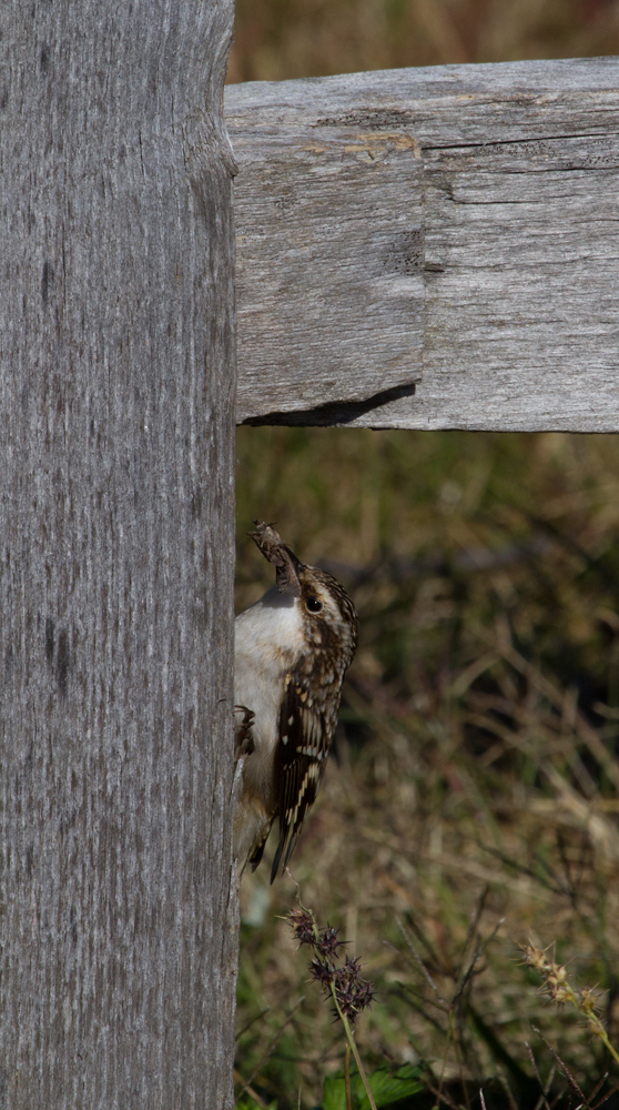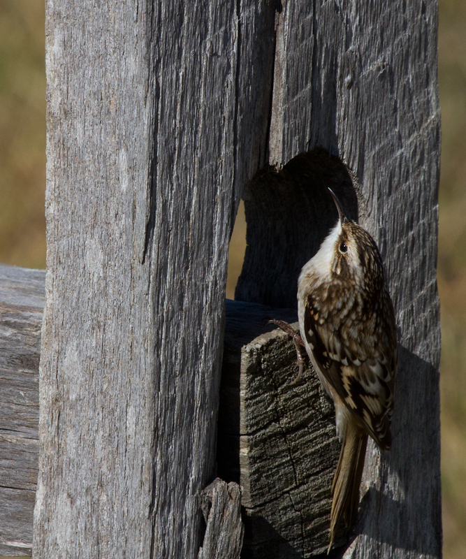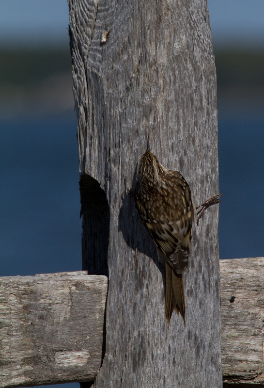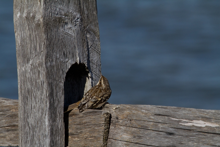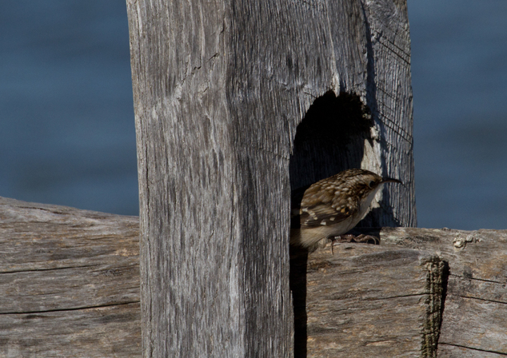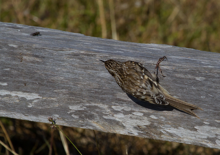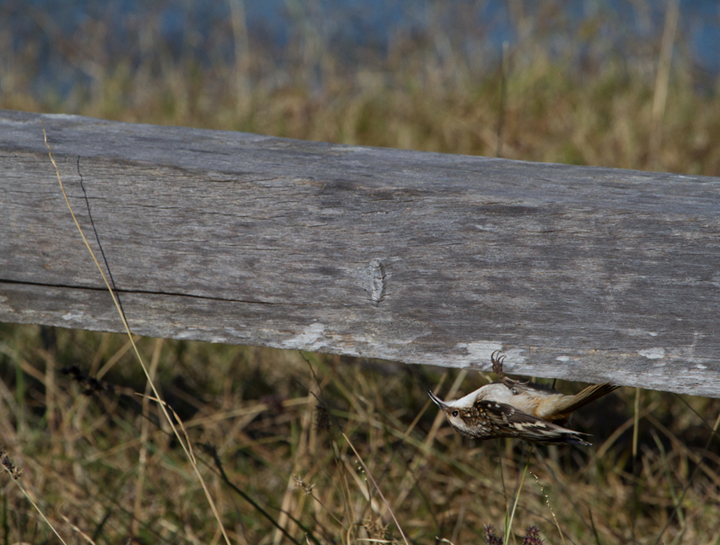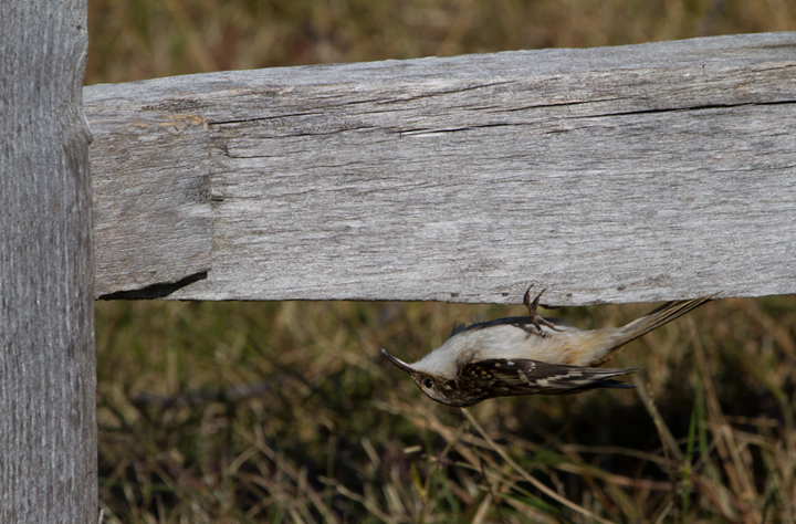 Above and below: An incredibly tame (and obviously hungry) migrant Brown Creeper allows an unusual photo shoot as it forages on a fenceline at Bayside Point on Assateague Island, Maryland (10/13/2012).