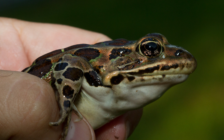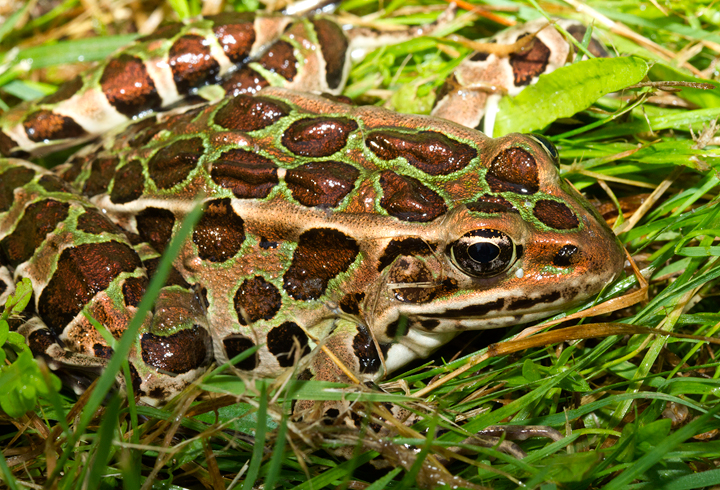 Below: A Northern Leopard Frog near Lincoln, Maine (7/6/2013).