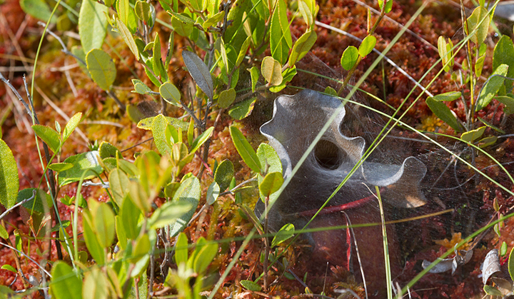 Below: Awesome! A spider web strategically placed at the mouth of a pitcher plant! Guess what you get if you make it in! Photographed at 1000 Acre Heath, Maine (7/7/2013).